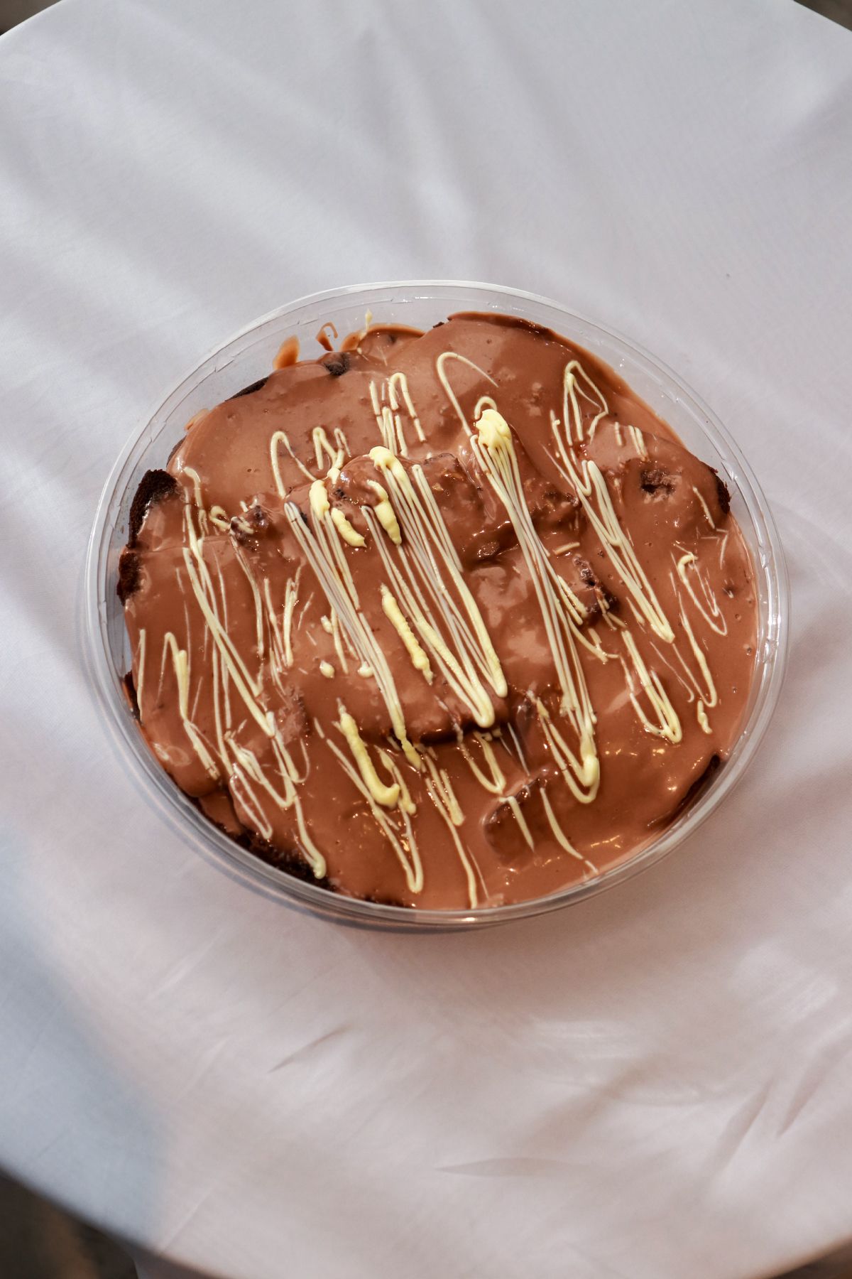 A rich chocolate cake topped with luscious chocolate sauce, perfect for sharing — serves approximately 7 people.